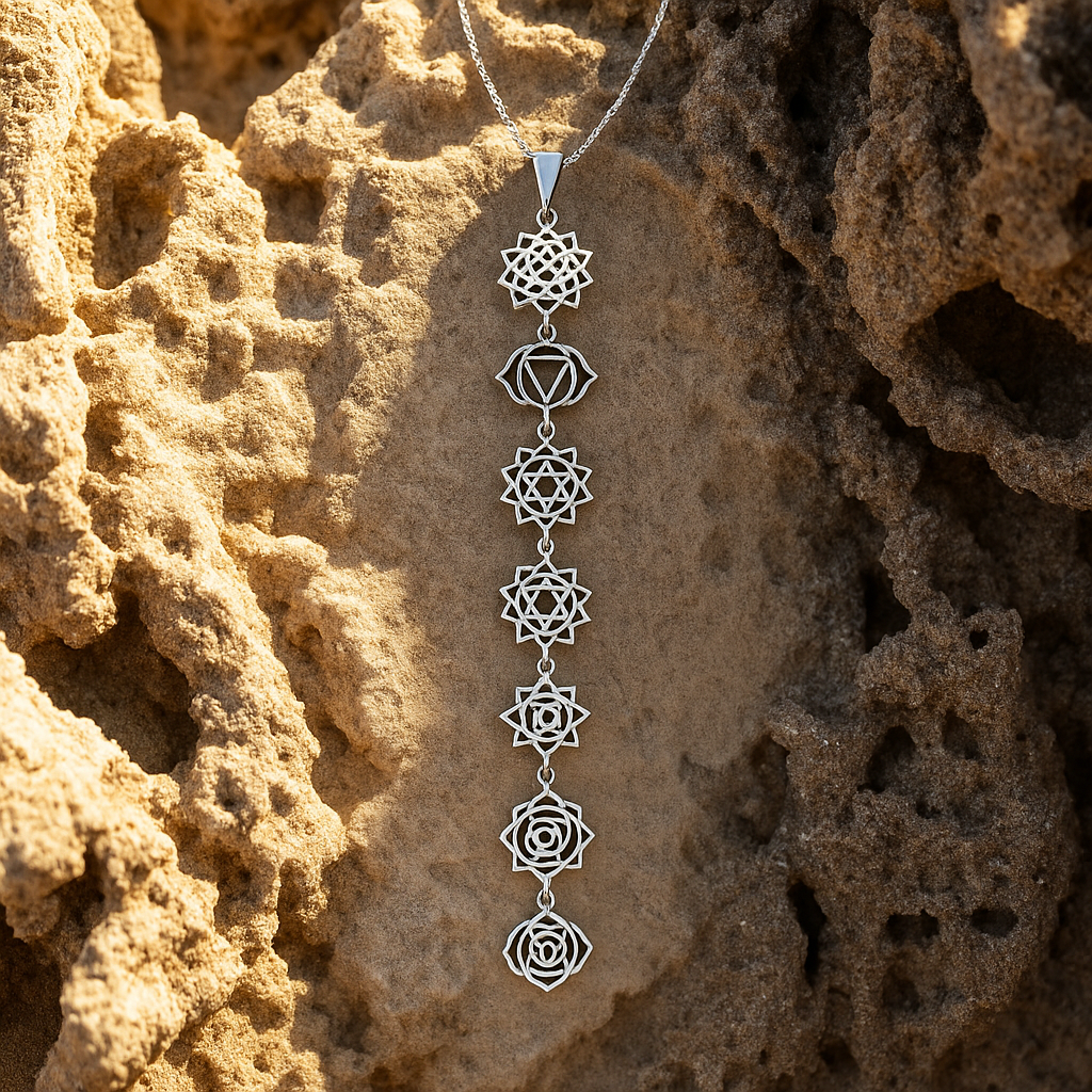 Balance your energy and elevate your spirit with this intricately designed Seven Chakra Pendant Necklace. Crafted in high-quality sterling silver, each geometric symbol represents one of the body’s energy centers—from the grounding Root Chakra to the enlightening Crown Chakra.