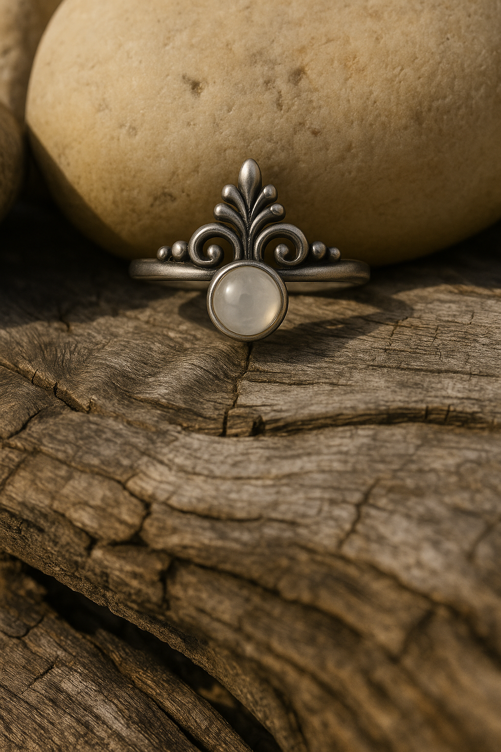 Classic Balinese Jawan technique with delicate granules, crafted in silver with a light accent. Ethnic elegance.