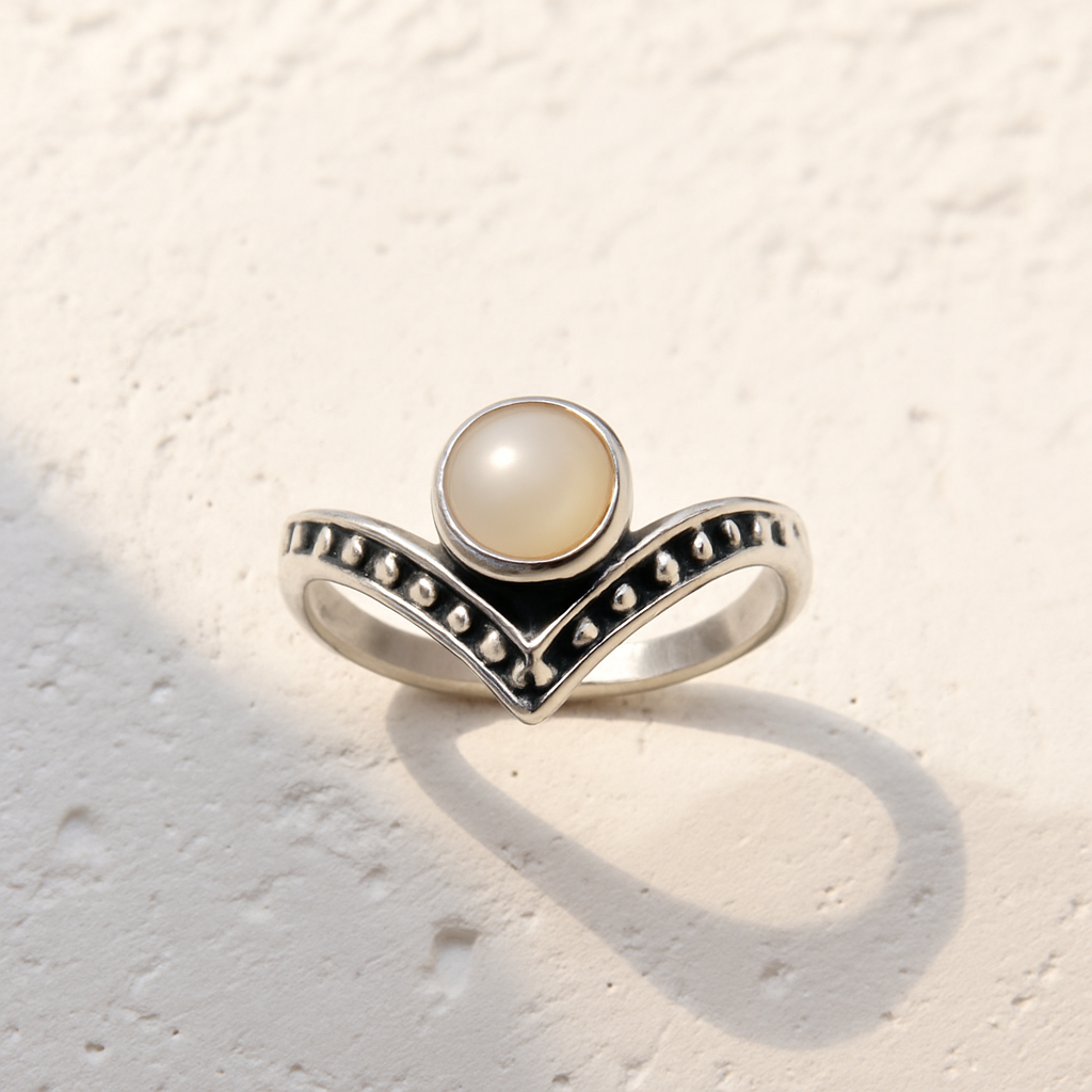 Olśniewający pierścionek ze srebra z perłą o delikatnym blasku. Minimalistyczna forma z subtelnym łukiem nadaje elegancji każdej stylizacji. Połączenie nowoczesnej prostoty z ponadczasowym urokiem.